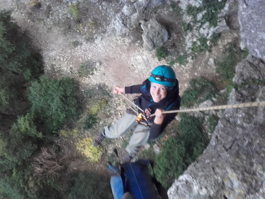 L’ascension jusqu’au sommet est déjà un compromis entre la randonnée et l’escalade ! Puis la descente comme par l’aven des Deux versants qui permet de traverser la montagne de la face Sud à la face Nord. La vue sur les Cévennes à la sortie de la grotte percant le milieu de la falaise est tout simplement époustouflant ! S’enchaine ensuite une succession de descentes en rappel dont la plus longue avoisine les 55 mètres !
